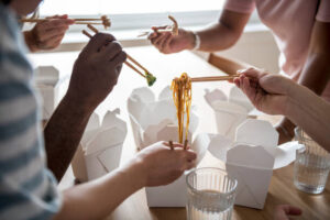 2025-10-08自律養生之言與行 <自律養生之言與行之1047> Friends eating Chow mein together 對比舒適圈,紀律常常伴隨痛苦。尤其是在「時間到了就得吃」的文化中,有計畫的不吃,是多數人無法想像的挑戰。 只有願意相信的人,才能穿越這層門檻,快速領悟身體的渴望。