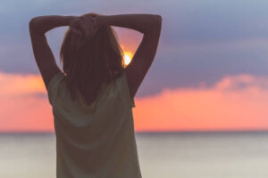 2025-10-08自律養生之言與行 <自律養生之言與行之1062> Silhouette of a girl with hands in the air and ocean scenery. 看似停滯的進食,其實是一種進補。 看似暫停的消化,其實是一種進階。 看似空乏的腸道,其實是一種進擊。 看似缺少了吃的滿足,其實是一種生命的躍昇。 看似沒有了生活的樂趣,其實是一種視野的超越。